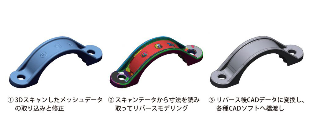リバースエンジニアリングは、ここでは現物がある製品(既存製品)や、製品のクレイモデルなどから3Dデータ・図面などを作成し、CADで読み込めるデータを作成する手法を指します。